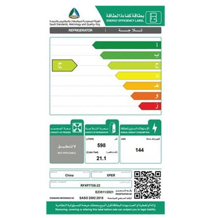 ثلاجة اكسبير RFXP770S-22 هي الحل المثالي للعائلات السعودية التي تبحث عن مساحة تخزين كبيرة مع مرونة في الاستخدام. بفضل خاصية التحويل إلى فريزر، يمكنك استخدامها حسب الموسم أو نوع التخزين المطلوب، سواء لحفظ الخضروات والمشروبات أو لتجميد اللحوم والمجمدات.
