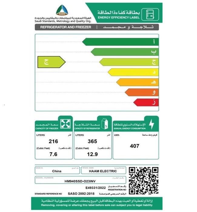 متجر الجهاز المنزلي – ثلاجة هام دولابي 20,5 قدم انفرتر HM940SSD023INV