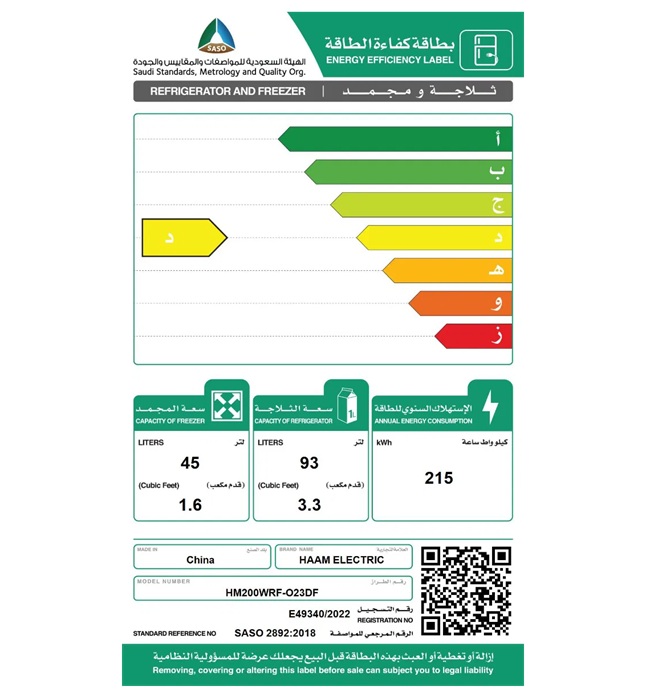 – كفاءة طاقة “د”: استهلاك منخفض للطاقة مع أداء تبريد ثابت.