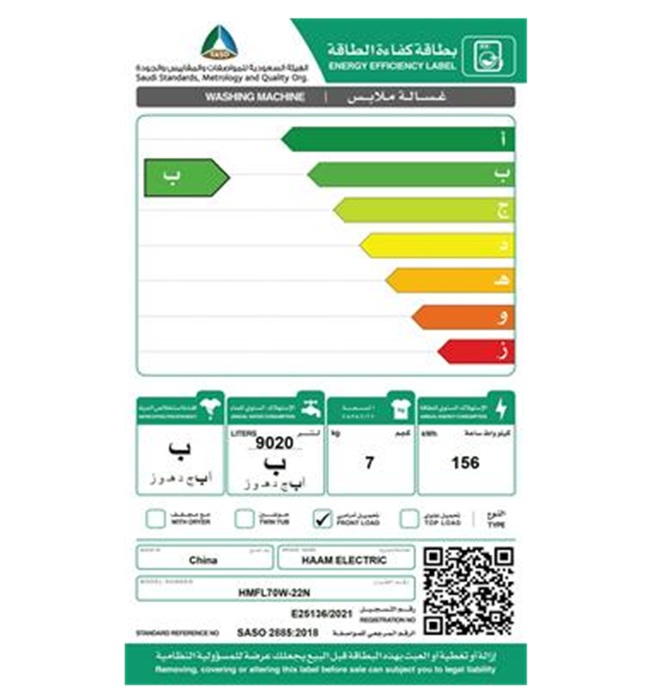 – كفاءة الطاقة: تصنيف “ب” حسب هيئة كفاءة الطاقة السعودية