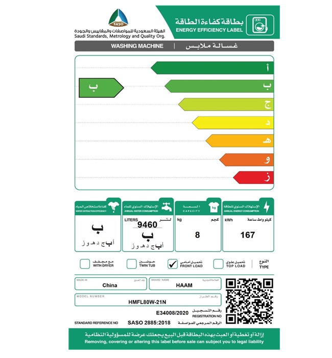 – كفاءة الطاقة: تصنيف “B” حسب هيئة كفاءة الطاقة السعودية