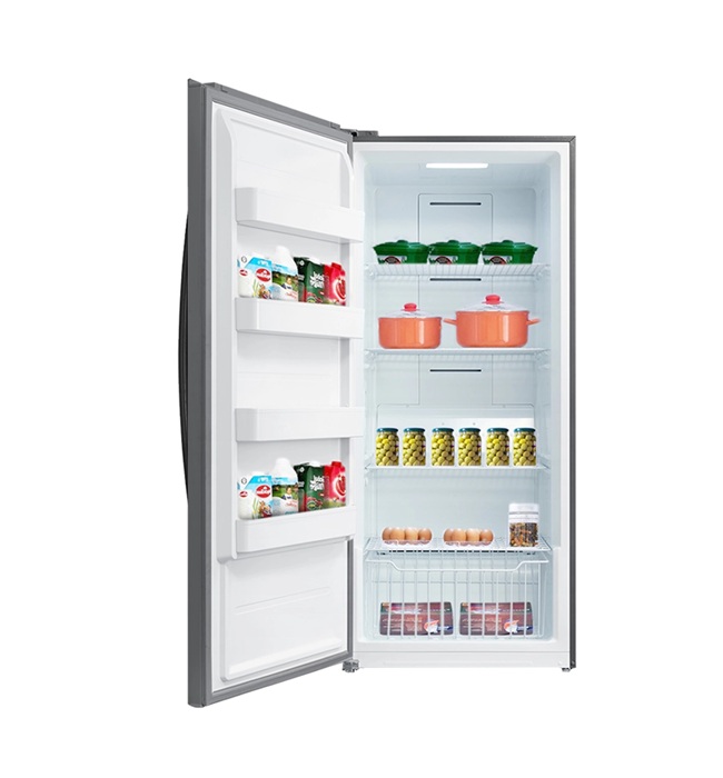 متجر الجهاز المنزلي – فريزر هام HM730SFR-M21N تايلاندي 21 قدم استيل يتميز بسعة ضخمة وتصميم رأسي أنيق، مع إمكانية التحول إلى ثلاجة حسب الحاجة، مما يجعله خيارًا مثاليًا للتخزين المرن في المنازل السعودية.