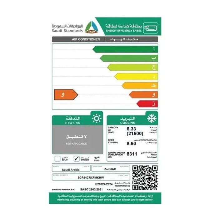 الجهاز المنزلي – مكيف الزامل شباك 24000 وحدة بارد ZCP24CRXFMKHW