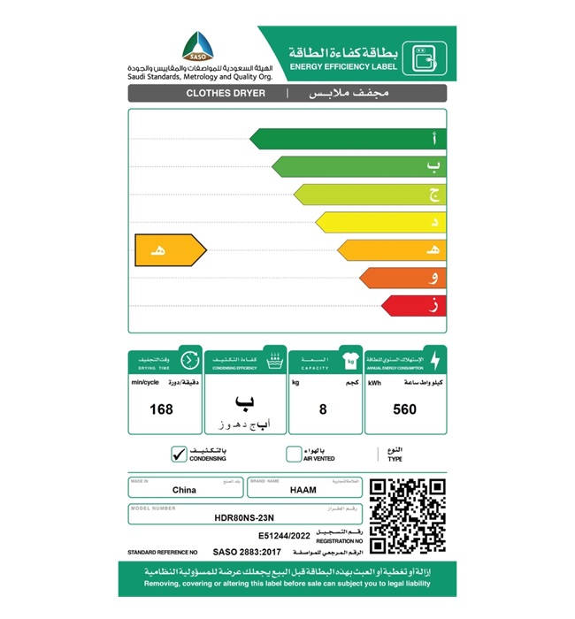 متجر الجهاز المنزلي – نشاف هام 8 كيلو HDR80NS23N